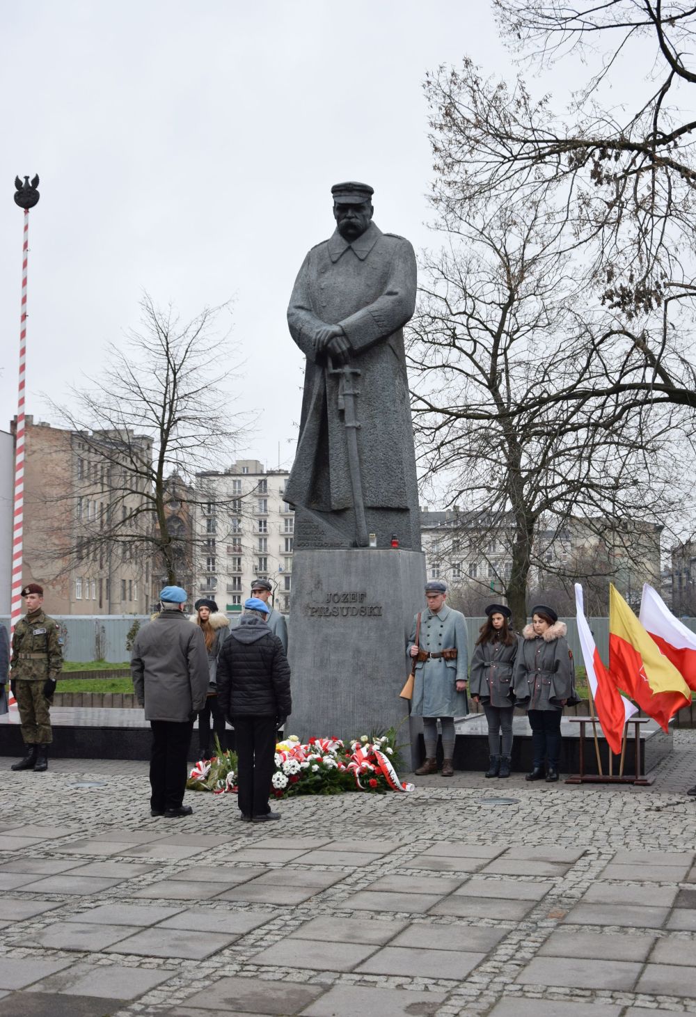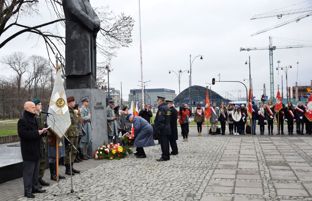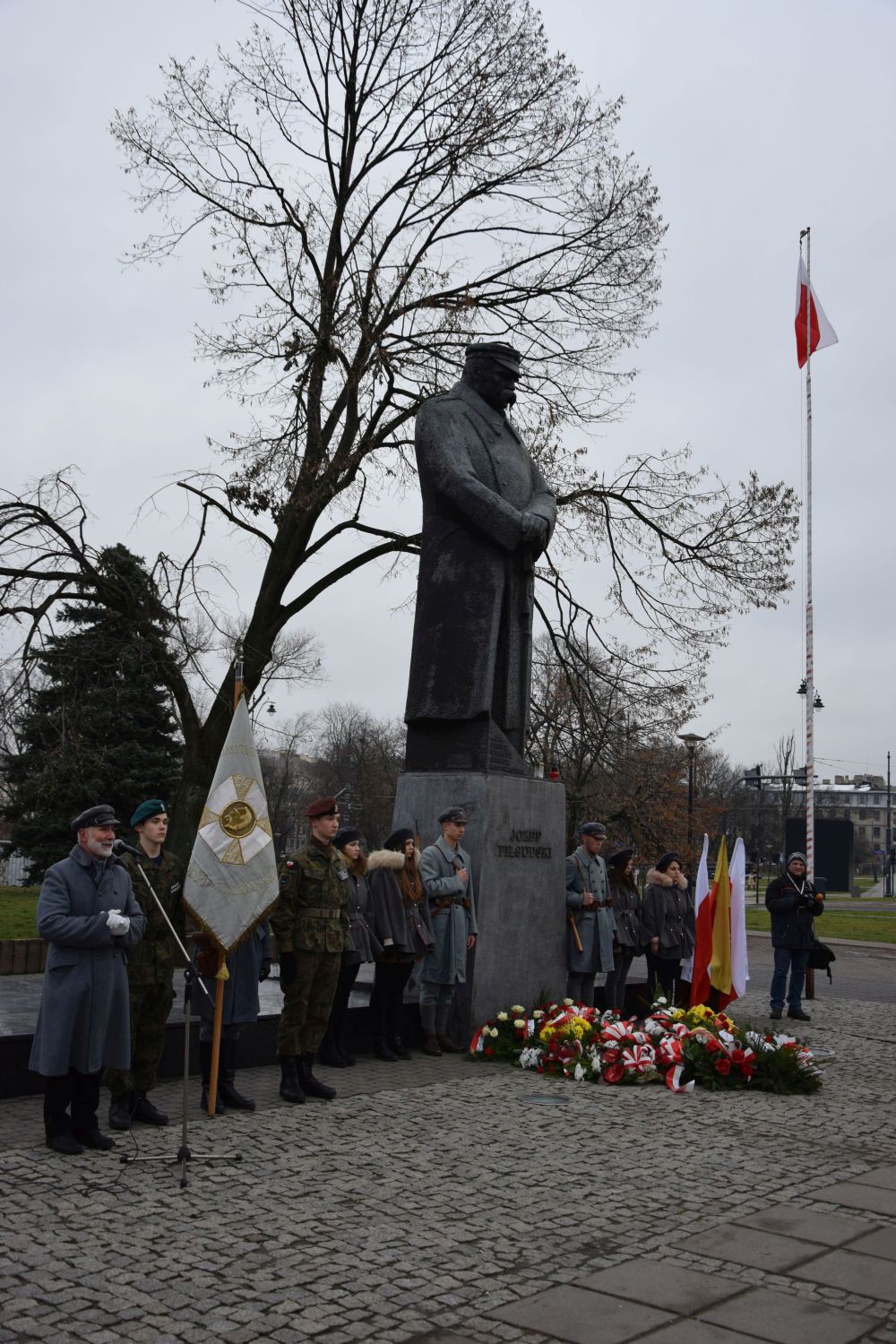 Przedstawiciele Samorządu Województwa Łódzkiego, Policji, Straży Miejskiej, Związku Strzeleckiego oddział Łódź, Związku Legionistów Polskich i Ich Rodzin, młodzież łódzkich szkół uczcili pamięć o Marszałku Józefie Piłsudskim przez złożenie kwiatów pod jego pomnikiem.