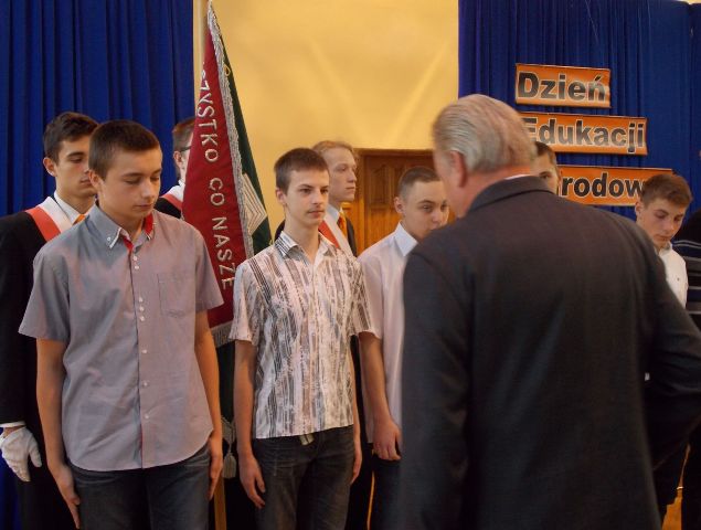 W Dniu Edukacji Narodowej odbyło się w szkole uroczyste ślubowanie uczniów klas pierwszych. Wręczone zostały również nagrody dyrektora nauczycielom i pracownikom szkoły, będące wyrazem uznania za ich wyróżniającą pracę zawodową. Dzień Edukacji Narodowej jest szczególnie ważny dla naszej szkoły. Po pierwsze jest to święto naszego patrona, po drugie jest świętem wszystkich pracowników oświaty, po trzecie tego dnia uczniowie klas pierwszych składają ślubowanie i stają się pełnoprawnymi członkami szkolnej społeczności.