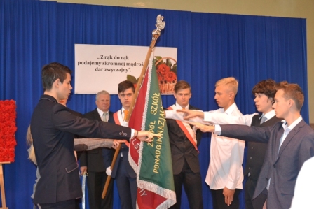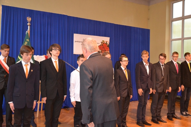 Tradycyjnie podczas uroczystych obchodów Dnia Edukacji Narodowej odbyło się pasowanie młodzieży klas pierwszych na uczniów naszej szkoły. Pasowania w imieniu dyrektor Henryki Michalskiej dokonał Mirosław Gintowt, nauczyciel naszej szkoły. Nowo pasowani uczniowie złożyli również uroczyste ślubowanie na sztandar szkoły.