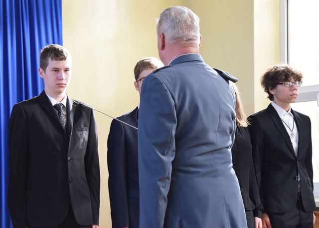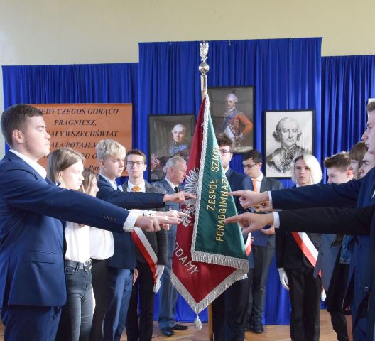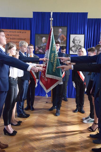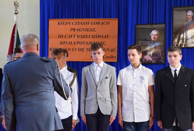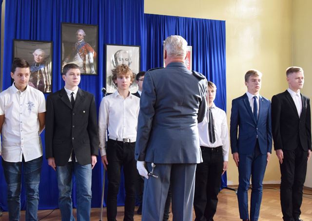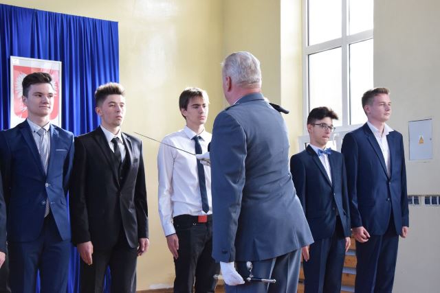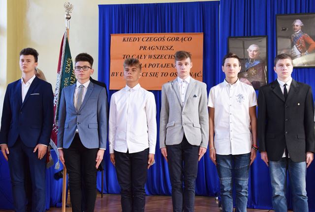 Tradycyjnie podczas uroczystych obchodów Dnia Edukacji Narodowej odbyło się pasowanie młodzieży klas pierwszych na uczniów naszej szkoły. Pasowania w imieniu dyrektor Henryki Michalskiej dokonał Mirosław Gintowt, nauczyciel naszej szkoły. Nowo pasowani uczniowie złożyli również uroczyste ślubowanie na sztandar szkoły.