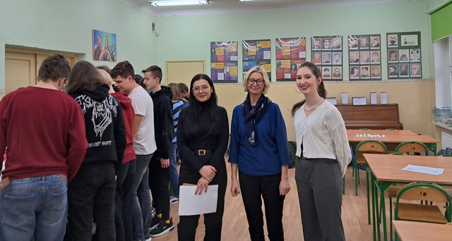 Uczniowie klasy I E uczestniczyli w wyjątkowej lekcji języka polskiego. Mieliśmy zaszczyt i przyjemność gościć Panią dr hab. prof. Małgorzatę Gajak-Toczek z Uniwersytetu Łódzkiego oraz studentki Panią Wiktorię Adamczyk, Panią Patrycję Miśkiewicz i Panią Kamilę Sochę z Koła Naukowego Sympatyków Dydaktyki Polonistycznej przy Zakładzie Dydaktyki Języka i Literatury Polskiej w Instytucie Filologii Polskiej na Wydziale Filologicznym Uniwersytetu Łódzkiego. Na zajęciach gościliśmy również dyrektora szkoły Pana Jakuba Tomczewskiego.