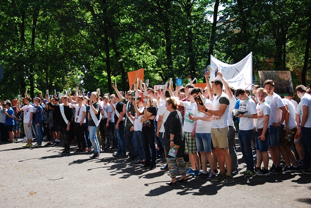 Dziękujemy klasom: I TC, I TD, I TE, II TE, II TC i III TA za przygotowanie wspaniałych transparentów i klasie I TD i III TA za zaprezentowanie pomysłowych rekwizytów.