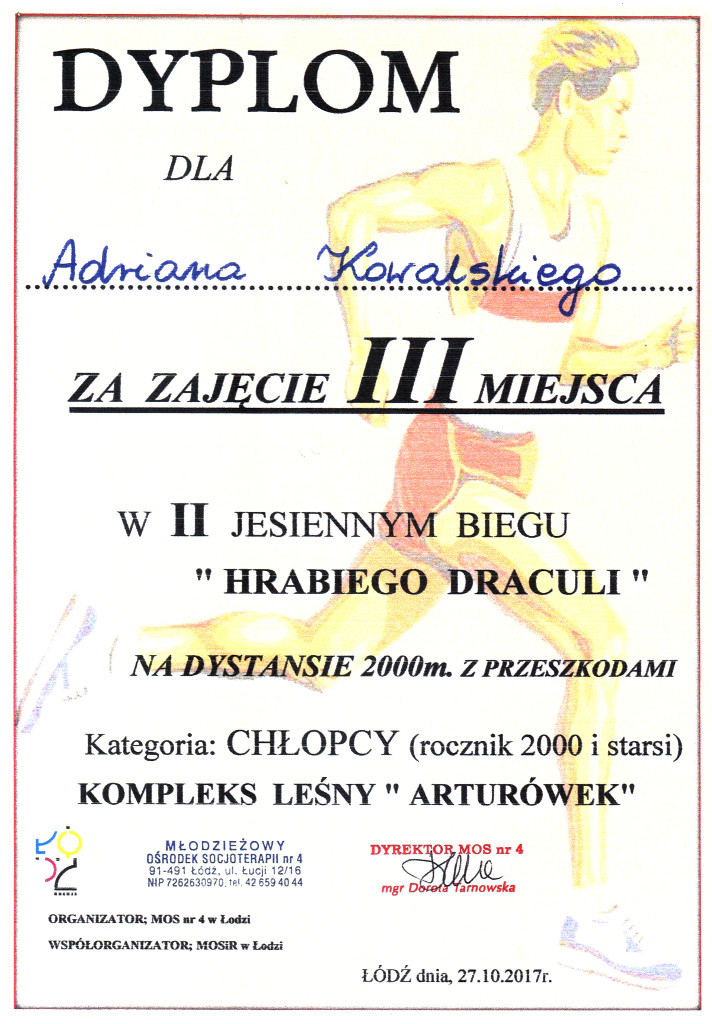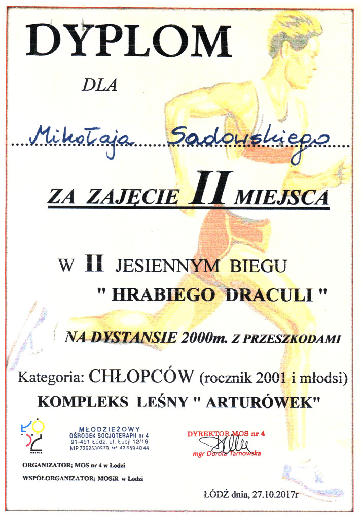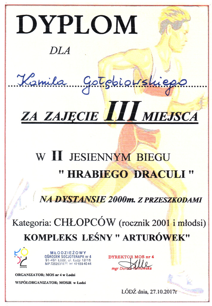 W dniu 27 października 2017 roku w Łagiewnikach odbyły się Jesienne Biegi Przełajowe Hrabiego Drakuli. Uczniowie naszej szkoły podobnie jak w ubiegłym roku zajęli