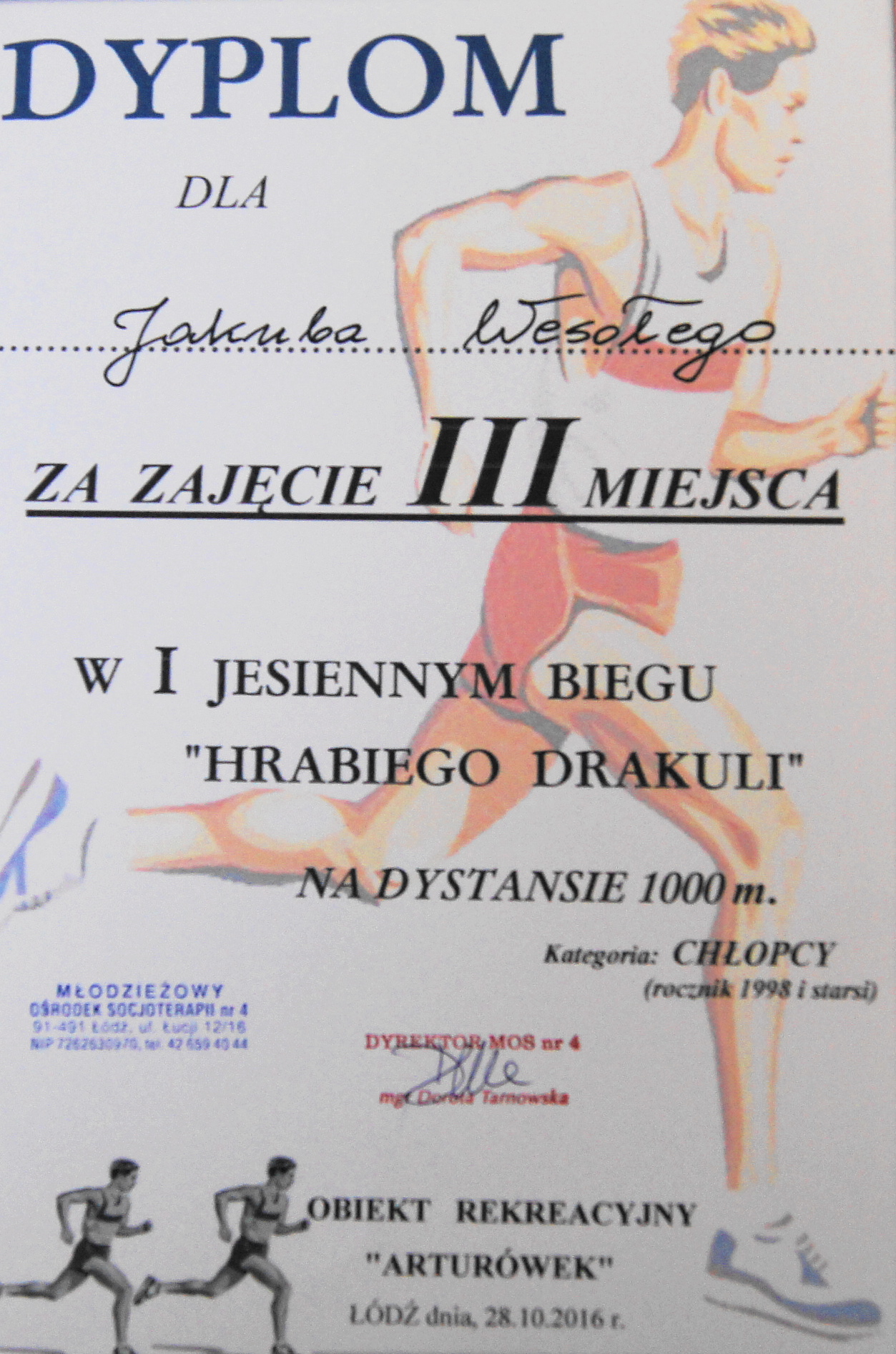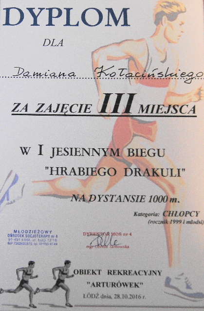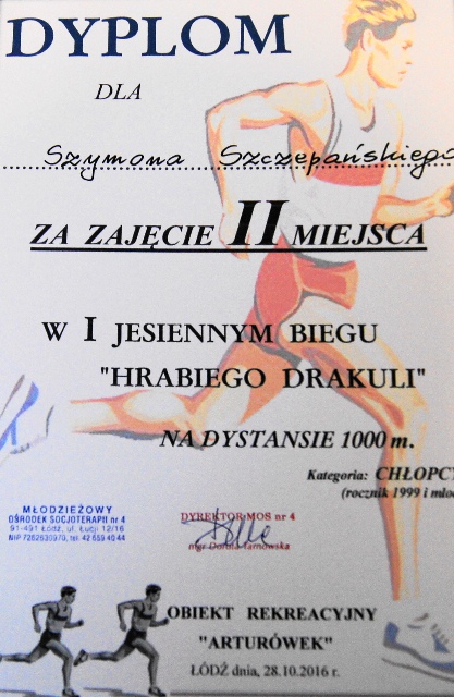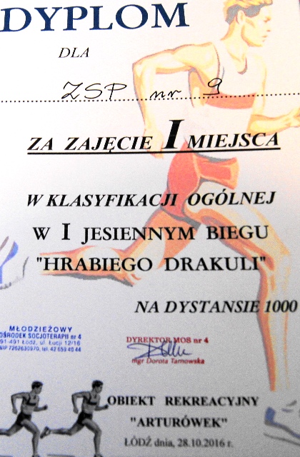 W dniu 28 października 2016 roku w Lesie Łagiewnickim odbyły się pierwsze Jesienne Biegi Przełajowe „Hrabiego Drakuli” na dystansie 1000 metrów. Zawody rozgrywano w klasyfikacji indywidualnej i drużynowej. Punktowano tylko pierwszych 15 miejsc w rocznikach 1998 i starsi oraz 1999 i młodsi. Suma punktów wywalczona wyłaniała najlepszą szkołę.