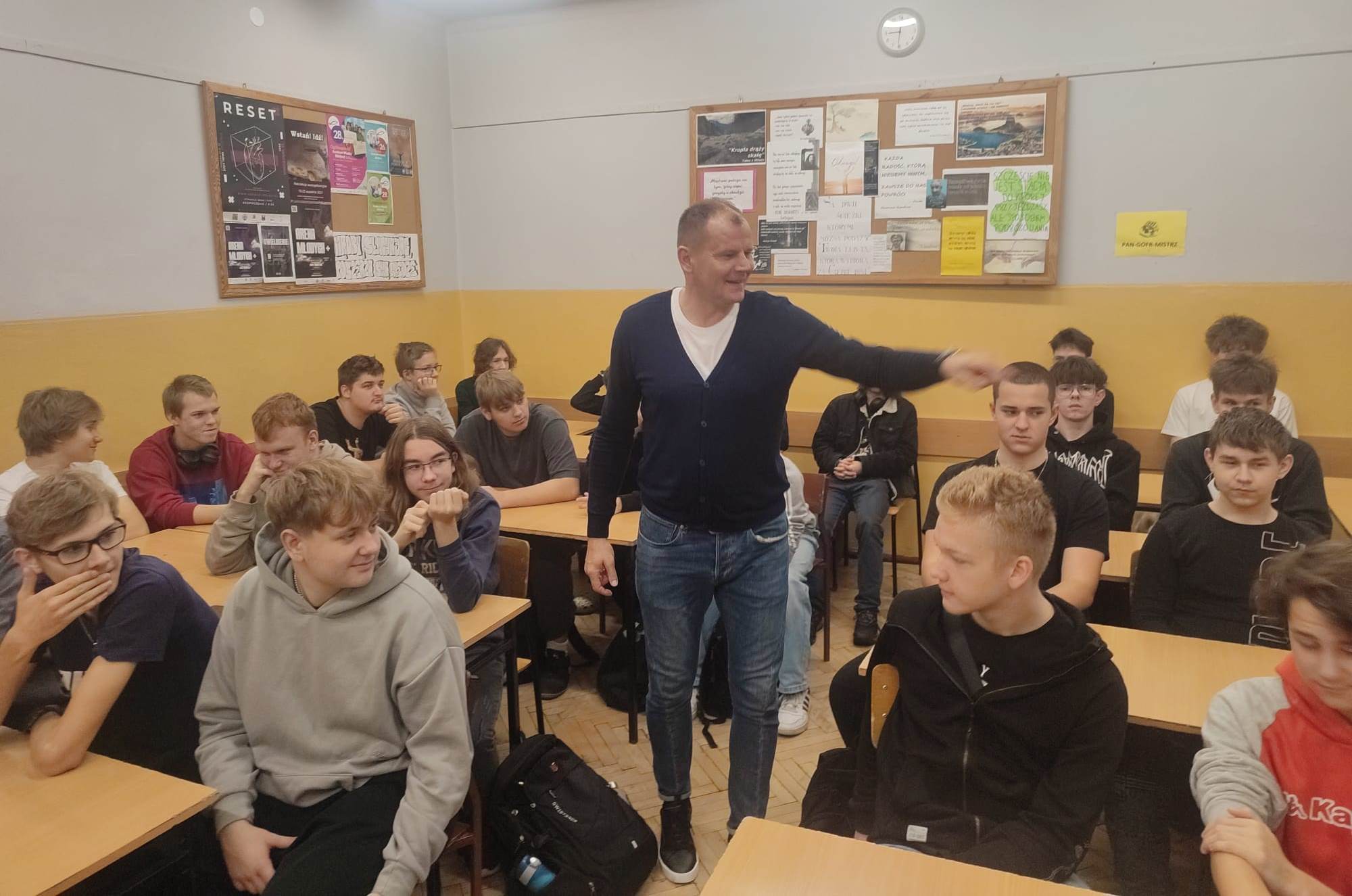 W spotkaniu wzięło udział niemal 40 moich uczniów z klas drugich i trzecich. Tematyka oscylowała wokół zagadnienia motywacji w codziennym życiu, jak również umiejętności postrzegania siebie. Tłem i punktem odniesienia do tych ważnych zagadnień była ciekawa historia życia naszego Gościa.