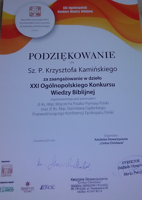 Do konkursu uczniów motywował oraz przygotował katecheta Krzysztof Kamiński. Obradom konkursowego jury przewodniczył ks. dr hab. prof. UKSW w Warszawie Sławomir Skobel.