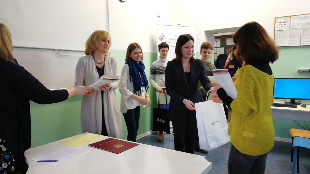 Wręczenia dyplomów i upominków dokonała pani dyrektor Henryka Michalska wraz z panią Joanną Sośniak, asystentką Wojewody Łódzkiego oraz panią Martą Chamernik, przedstawicielem firmy BSH. Pani Joanna Sośniak odczytała również list od Wojewody Łódzkiego Zbigniewa Rau, skierowany do uczestników konkursu.