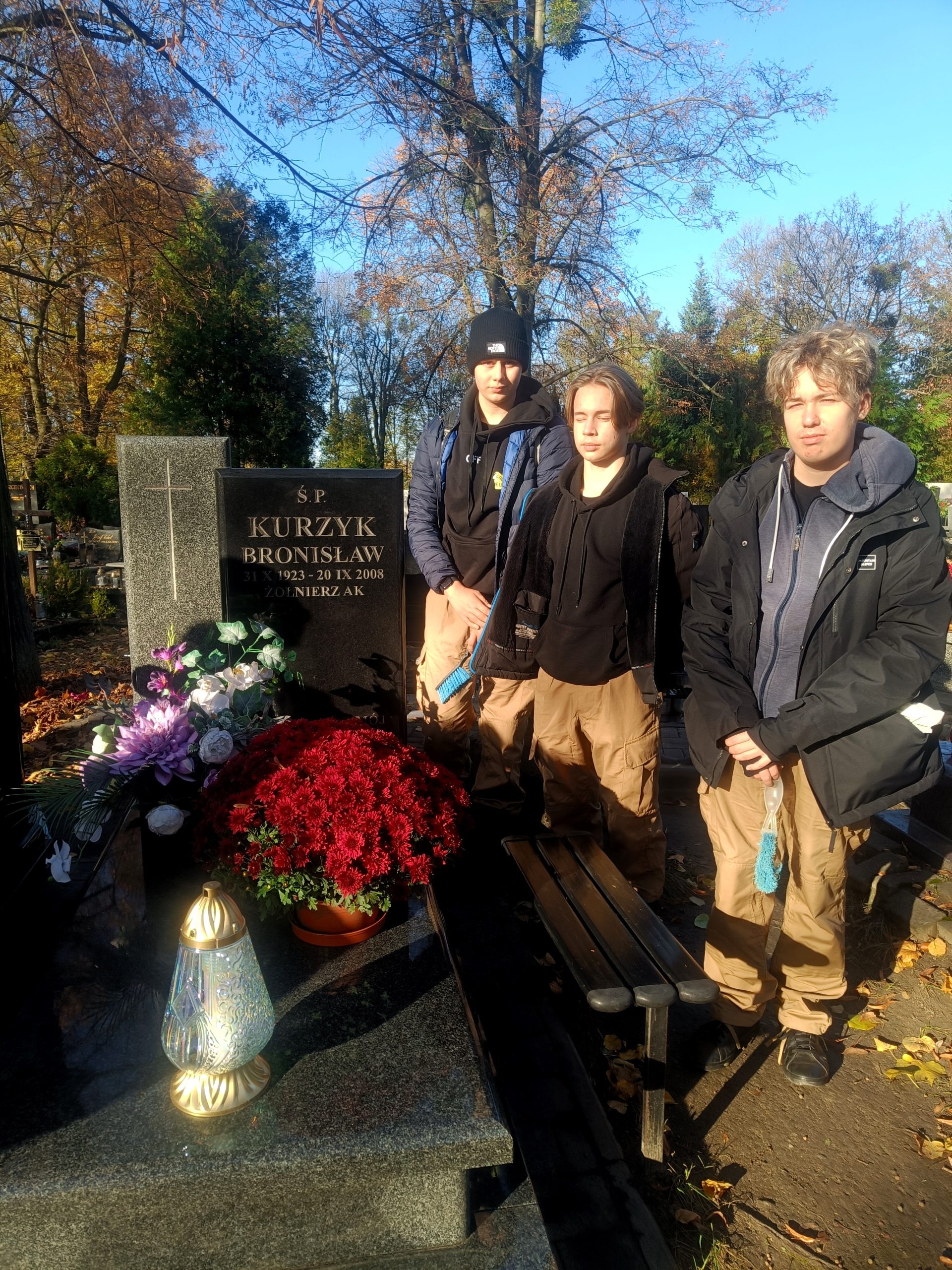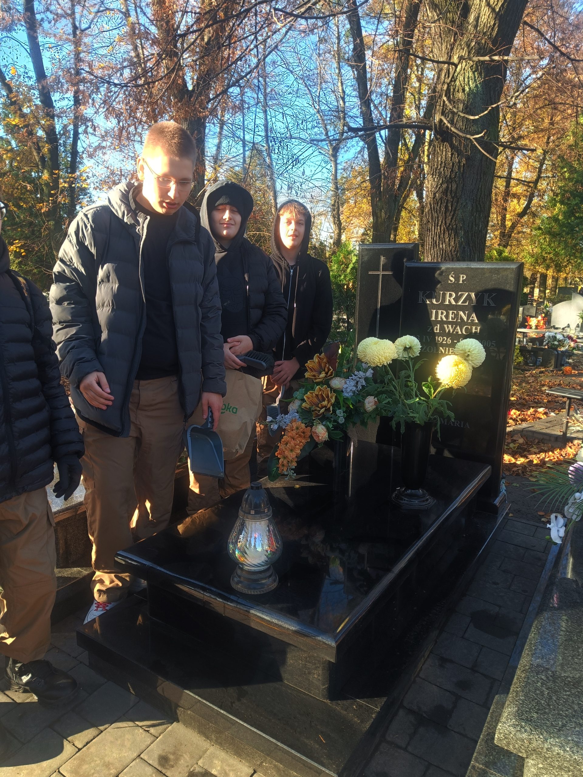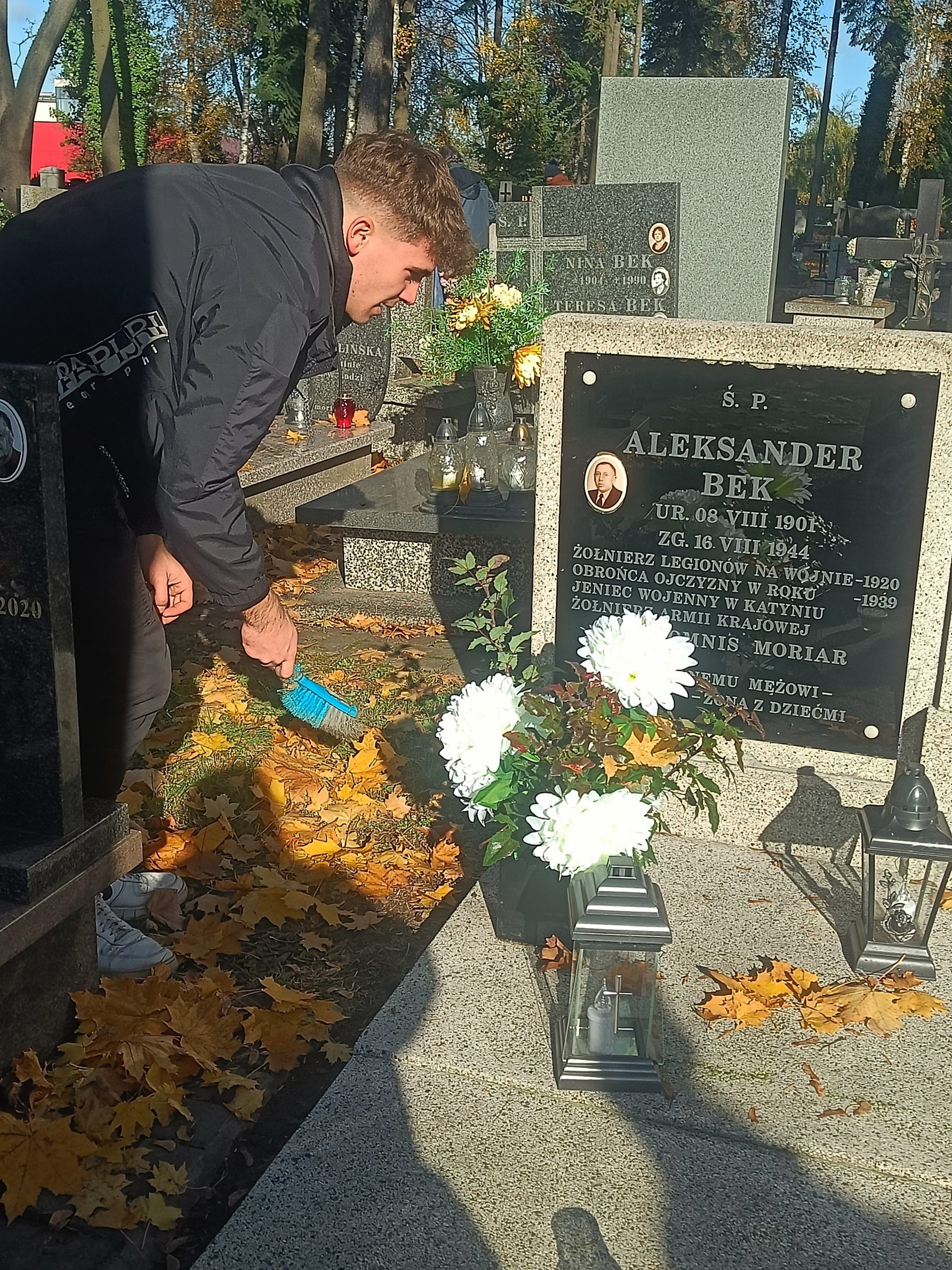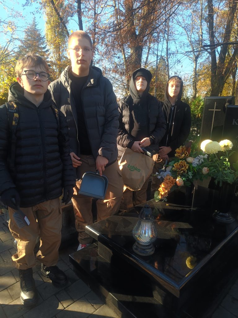 31 października uczniowie naszej szkoły z klas I C i IV A pod opieką pani Iwony Drzeń porządkowali groby żołnierzy Armii Krajowej oraz zapalali znicze na tych grobach, które były już uporządkowane przez rodziny zmarłych żołnierzy.