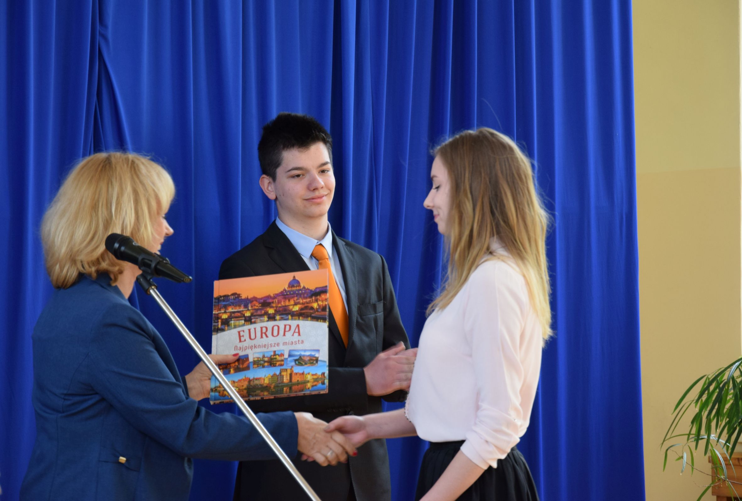 Przedstawicielki firm patronackich: BSH Sprzęt Gospodarstwa Domowego Sp. z o. o. , Procter & Gamble, Veolia Energia Łódź S.A. wręczyły najlepszym uczniom upominki rzeczowe.