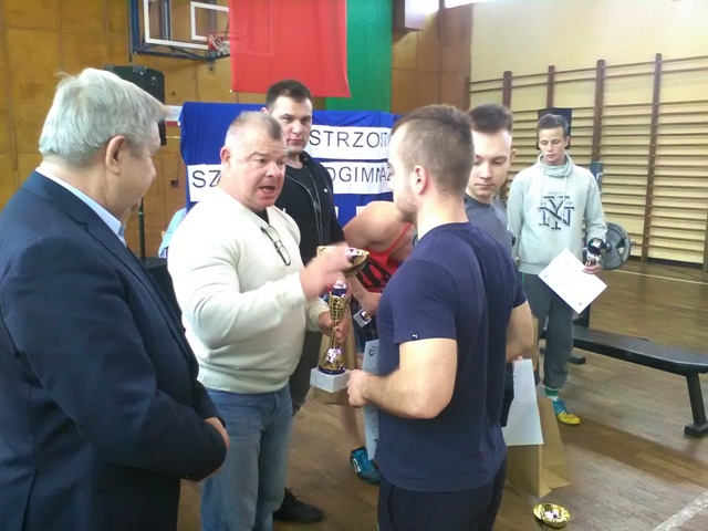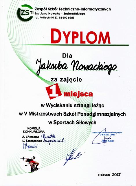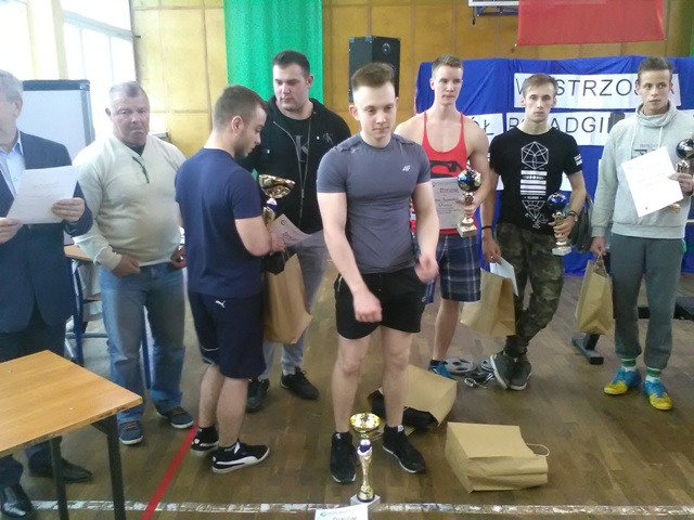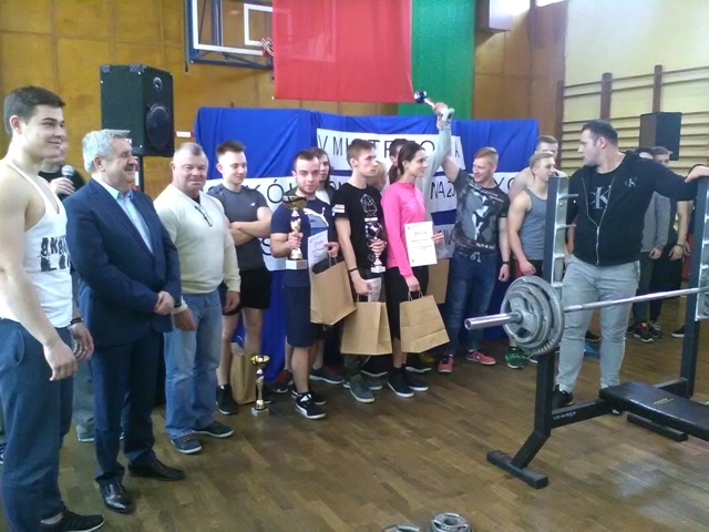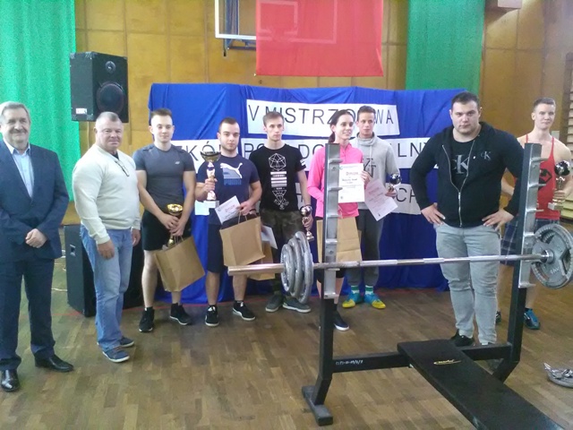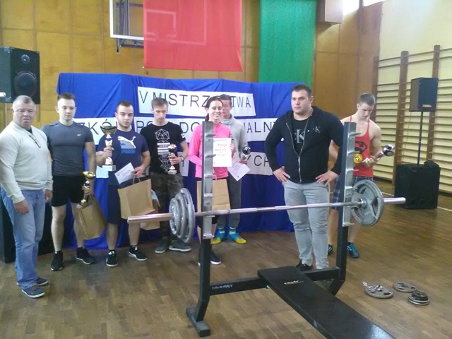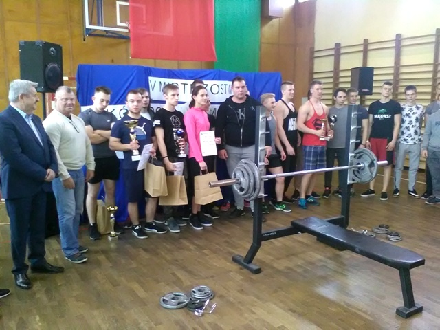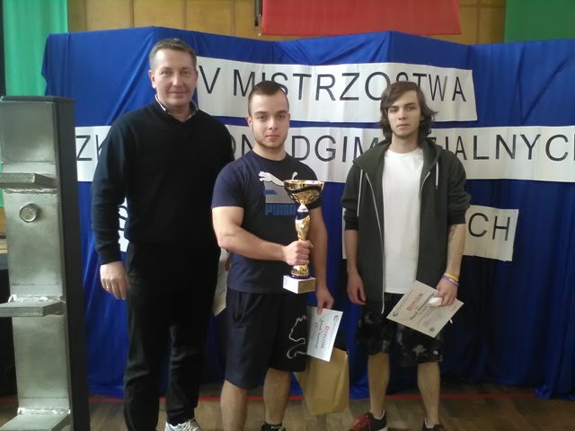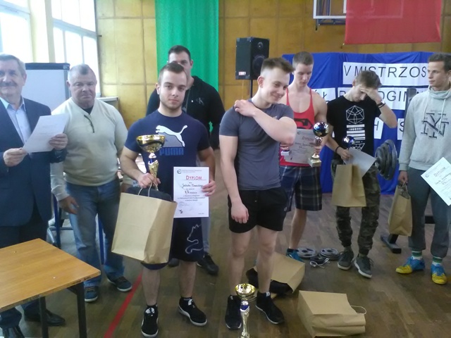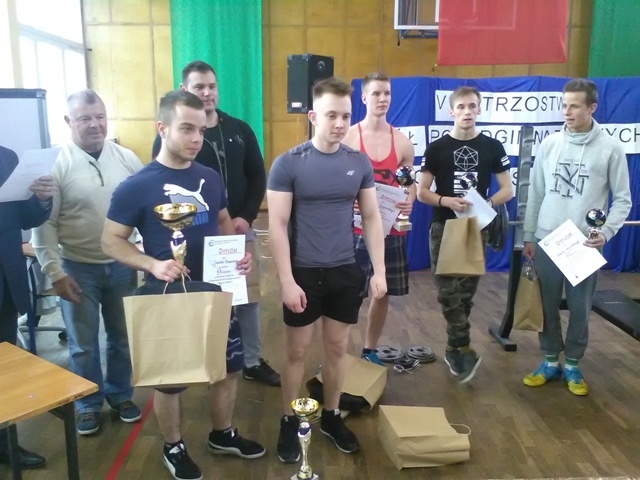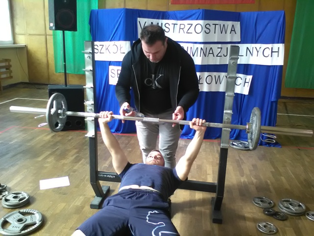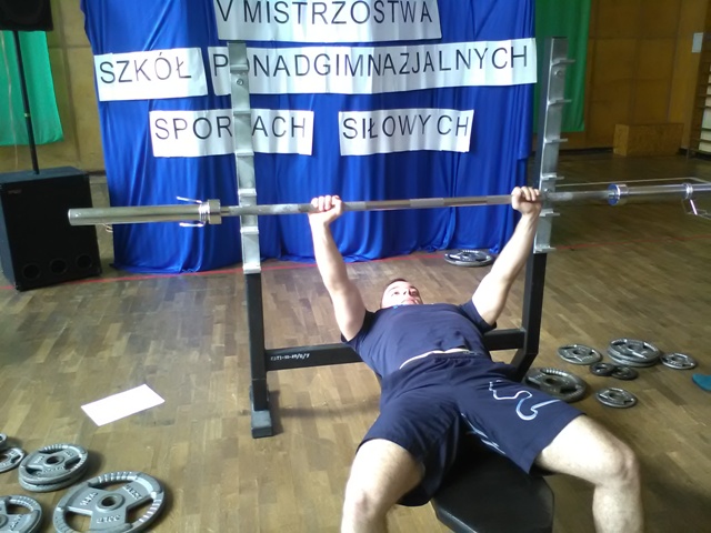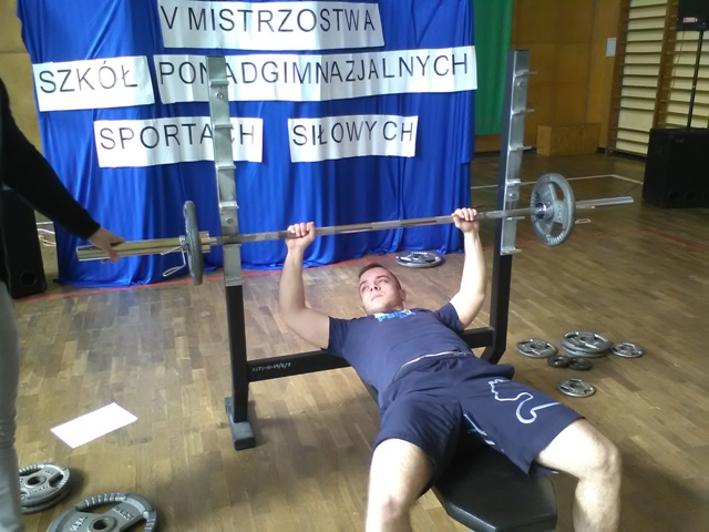 W wyciskaniu sztangi naszą szkołę reprezentował uczeń klasy IV TA Jakub Nowacki, który wygrał całą konkurencję z wynikiem 79 powtórzeń.