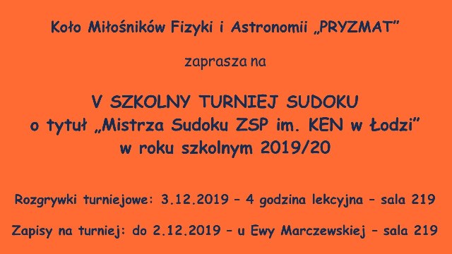 o tytuł „Mistrza Sudoku ZSP im. KEN w Łodzi”