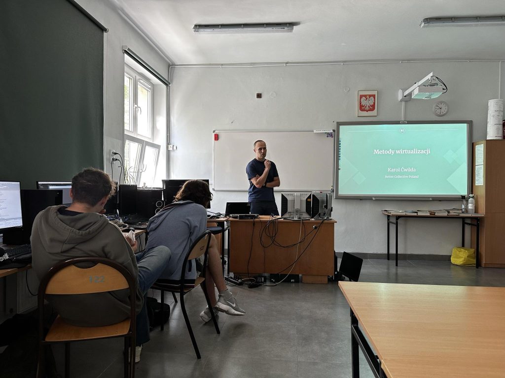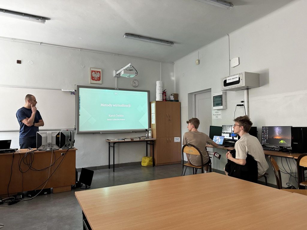Przedstawiciele firmy Better Collective spotkali się na zajęciach z uczniami klasy 3E, kształcących się w zawodzie technik programista. Tematem było wykorzystanie systemu GIT oraz wirtualizacji w kontekście bezpieczeństwa cyfrowego danych firmy i klientów. Uczniowie aktywnie uczestniczyli w sesjach, zadając wiele pytań i angażując się w dyskusje. Było to bardzo budujące i pokazało, że temat cyberbezpieczeństwa jest niezwykle istotny dla młodych programistów. Przedstawiciele firmy Better Collective dostarczyli nie tylko teoretycznej wiedzy, ale również praktycznych przykładów z ich codziennej pracy.