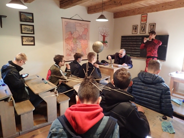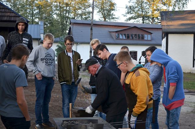 Również warsztaty kucia gwoździ oraz odlewania kul pistoletowych w Maleńcu cieszyły się dużym zainteresowaniem uczniów. Natomiast w Kolbuszowej mogliśmy, oprócz charakterystycznej dla tamtego terenu zabudowy drewnianej, poznać działanie starych narzędzi i urządzeń, jak tokarka, warsztat tkacki czy wyposażenie kuźni. Ciekawość wzbudziła również dawna szkoła, w której uczniowie mogli m.in. spróbować pisania piórem zanurzanym w atramencie w kałamarzu czy też rysikiem na specjalnych tabliczkach.