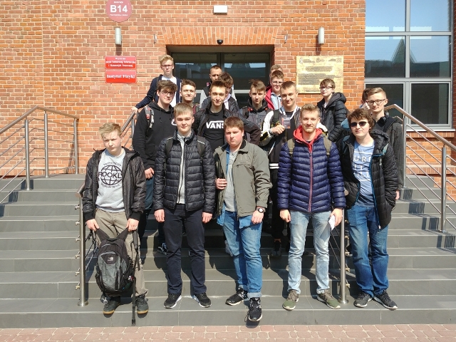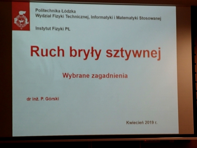 4 kwietnia 2019 roku w ramach Dnia Wydziału Fizyki Technicznej, Informatyki i Matematyki Stosowanej Politechniki Łódzkiej klasa I TF pod opieką Ewy Marczewskiej odwiedziła Wydział i wysłuchała wykładu z doświadczeniami „Ruch bryły sztywnej”. Dowiedzieliśmy się m.in. dlaczego rower podczas jazy się nie przewraca i jak skręca, co to jest i jak działa żyrokompas, o precesji Ziemi oraz braliśmy udział w pokazach.