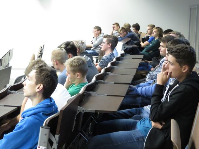 Uczniowie klasy III TA i III TB pod opieką Ewy Marczewskiej i Anny Szewczyk uczestniczyli w wykładzie z demonstracjami „Ruch bryły sztywnej” na Wydziale Fizyki Technicznej, Informatyki i Matematyki Stosowanej Politechniki Łódzkiej. Wykład prowadził dr inż. Piotr Górski przy asyście technika inż. Mateusza Mirowskiego.