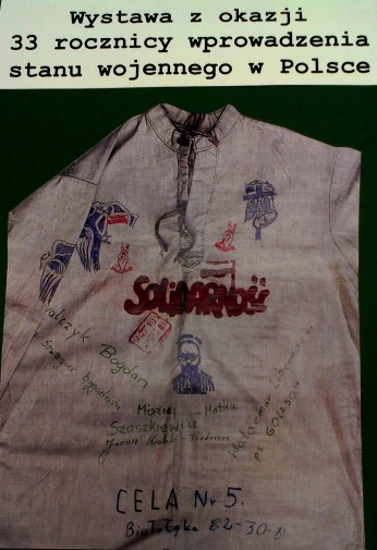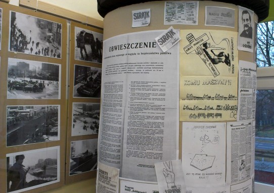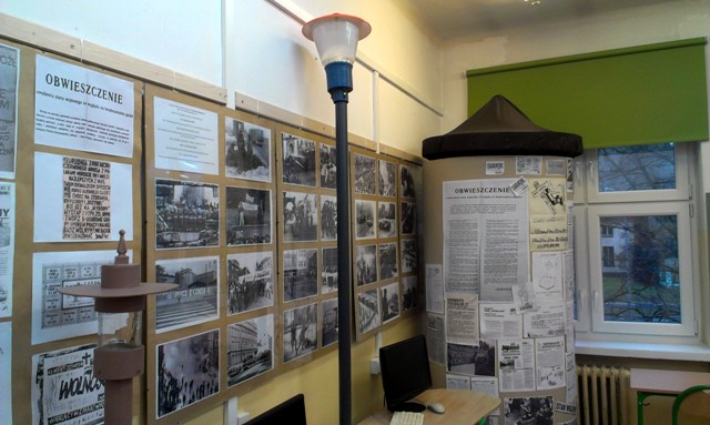 Ekspozycja przygotowana została przez uczniów na potrzeby obchodów 33 rocznicy wprowadzenia stanu wojennego, które odbyły się w naszej szkole 12 grudnia 2014 roku. Nad pracami młodzieży czuwali nauczyciele: Katarzyna Pankratz, Dorota Serwik-Porowska i Renata Waczyńska-Wróblewska.