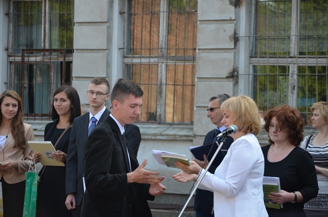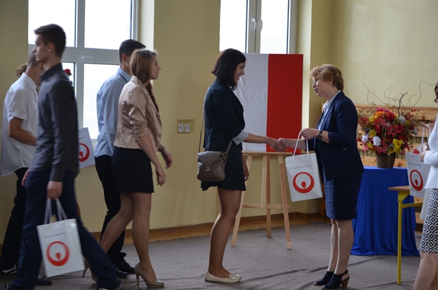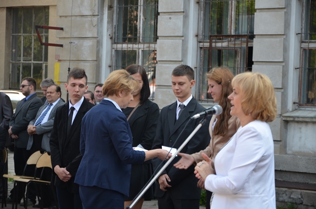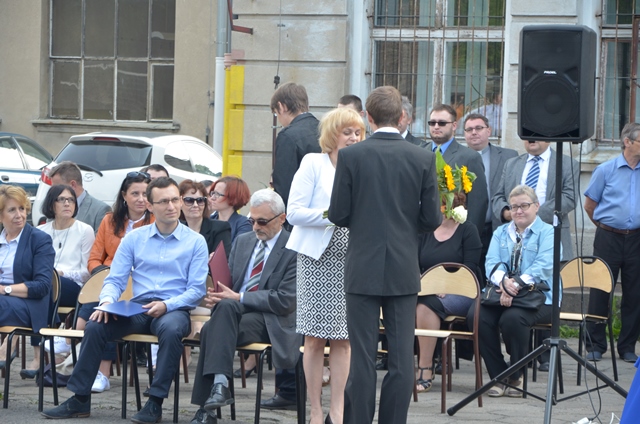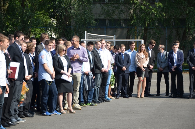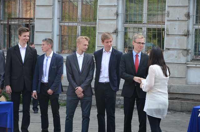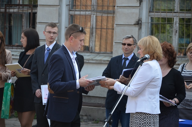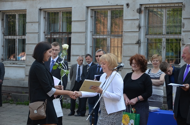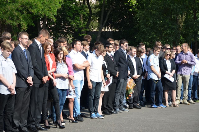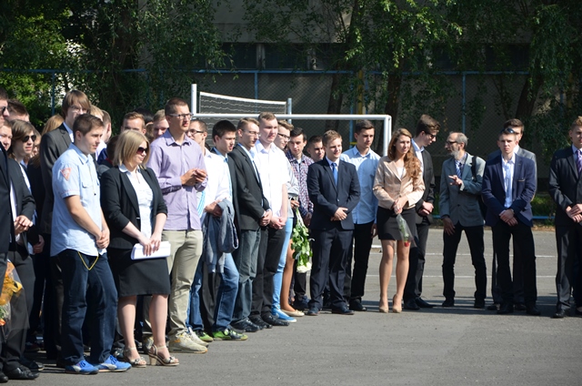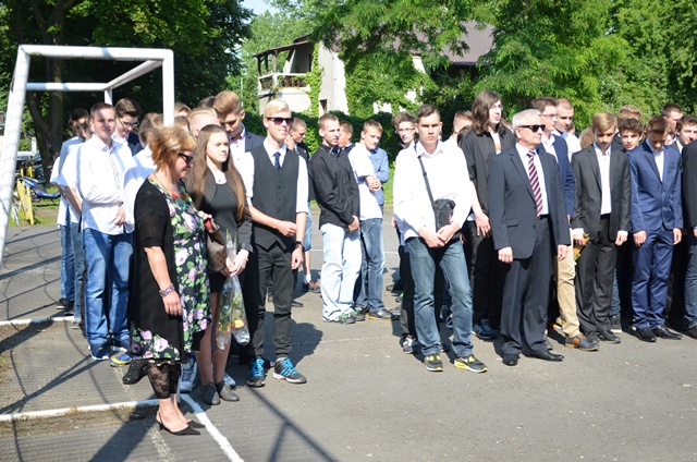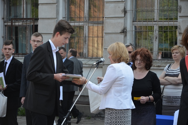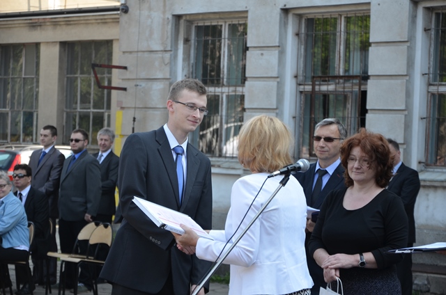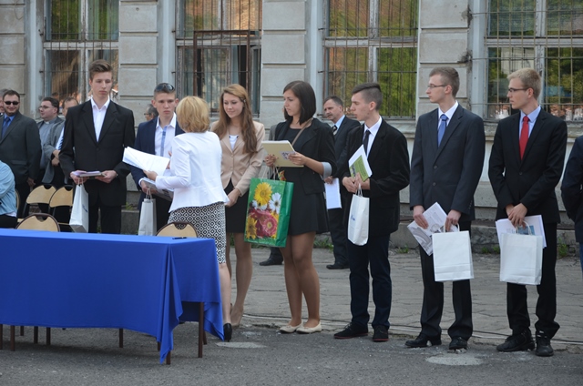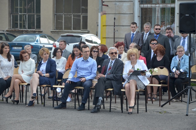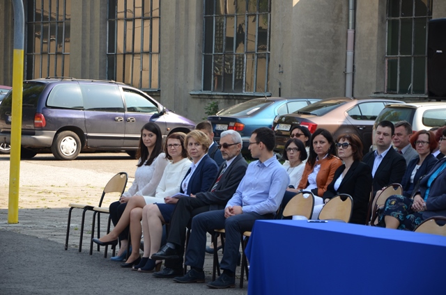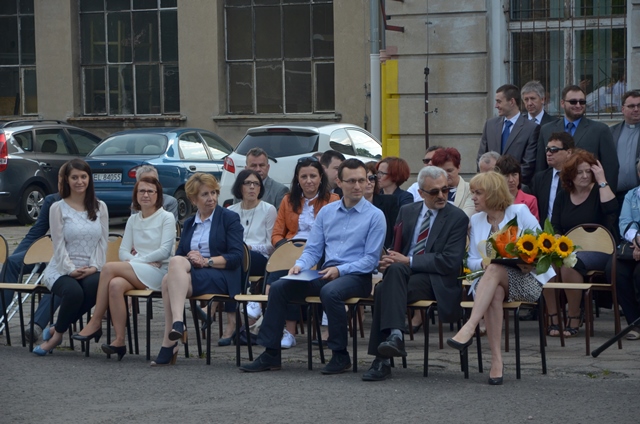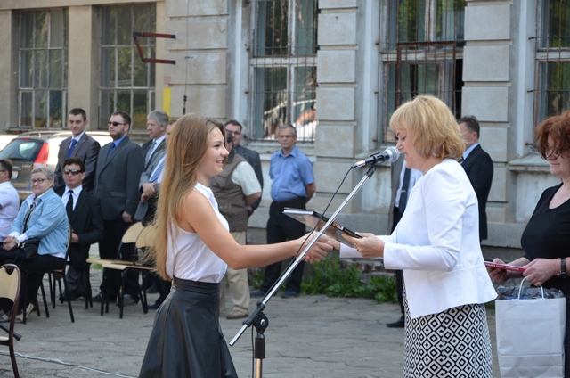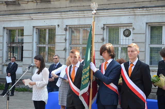 Uroczystości kończące rok szkolny 2014/2015 odbyły się na boisku szkolnym. Obecnością swoją zaszczycili nas dziekan Wydziału Fizyki Technicznej, Informatyki i Matematyki Stosowanej Politechniki Łódzkiej prof. dr hab. Grzegorz Bąk, przedstawiciele firm patronackich oraz rodzice uczniów z przewodniczącą Rady Rodziców Dorotą Świnogą na czele. Firmę Veolia Energia Łódź reprezentowali dyrektor ds. Zasobów Ludzkich Teresa Pietrowska oraz Agnieszka Skrodzka, firmę Printor prezes Krzysztof Torczyński, zaś BSH Karolina Stogidis.